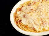 Fettucini noodles covered with a white creamy sauce with parmesan.