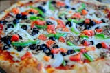 A thicker crust cut in 28 pieces. Minimum 24 hour advance notice.